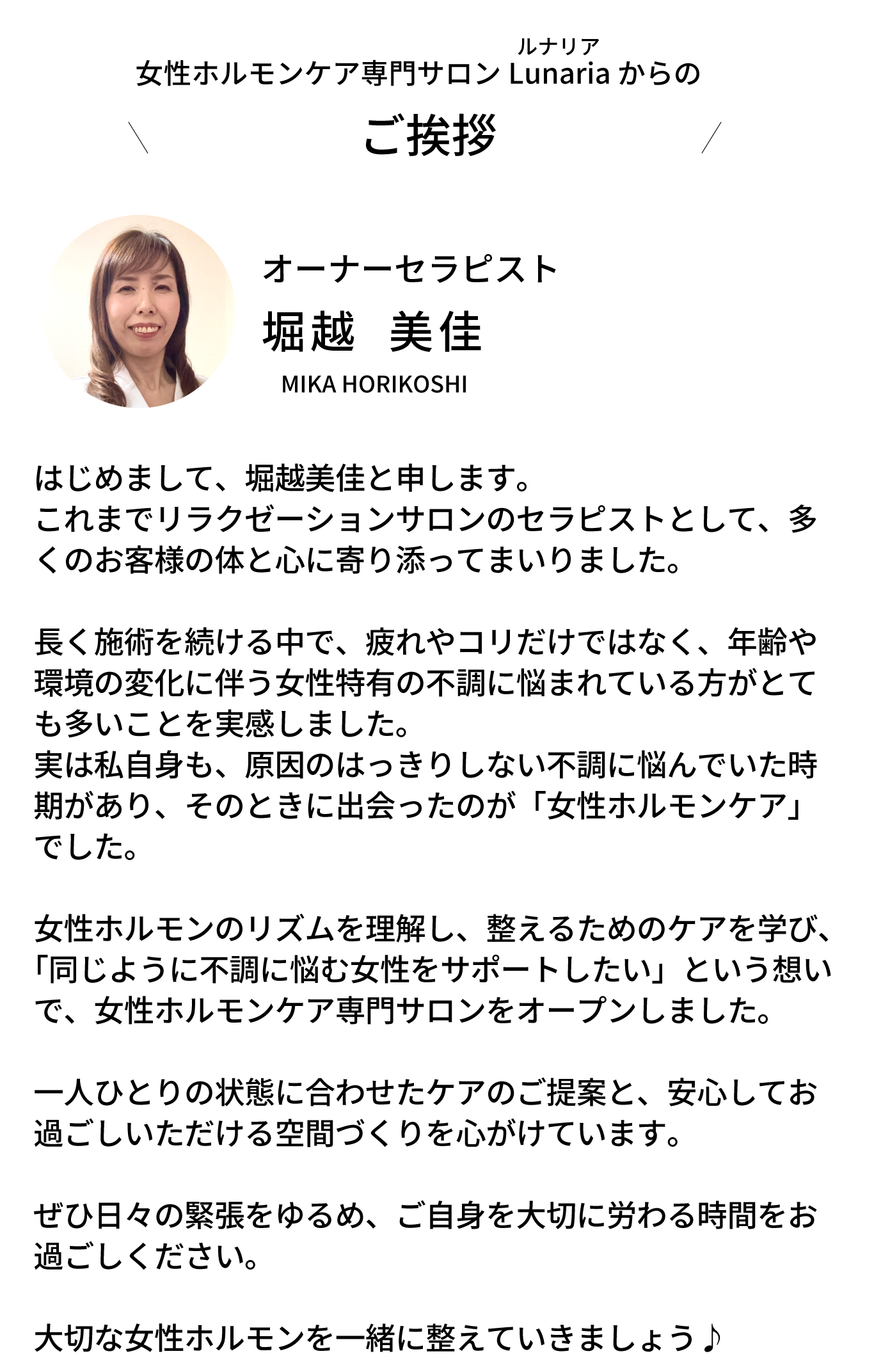 女性ホルモンケア専門サロンLunaria(ルナリア)